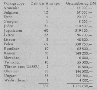 Nach Volksgruppen geordnet verteilen sich die An­träge und die bewilligten Mittel wie folgt: