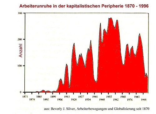 "Der Widerstand gegen die eigene Proletarisierung ... war ein entscheidender Faktor für Arbeiterunruhen in der kolonialen und halbkolonialen Welt am Ende des 19. Jahrhunderts. Zur gleichen Zeit wurden jedoch neue, strategisch positionierte Arbeiterklassen geschaffen..." (Silver: 183f.)