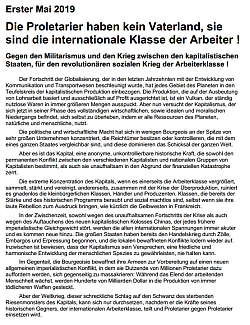 Aufrufe zum (revolutionären) 1. Mai 2019 KIP-Aufruf: Die Proletarier haben kein Vaterland, sie sind die internationale Klasse der Arbeiter !