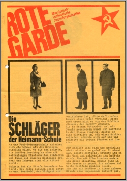 Ausschnitt aus der Titelseite der Spandauer Schülerzeitung "Radikalinski" Nr. 2 vom November 1968Erstmalig trat die Rote Garde mit Flugblättern, in denen der "antiimperialistische und antifaschistische Kampf" propagiert wurde, in größeren Zusammenhängen in Erscheinung, als die radikale westberliner Linke im August 1968 gegen den Einmarsch von Truppen der Warschauer Paktstaaten in die CSSR zur Niederschlagung des "Prager Frühlings" demonstrierte. Hinzu kam eine weitere maoistische (Klein)Gruppe, die nicht aus dem Schüler*innenspektrum stammte (18).
