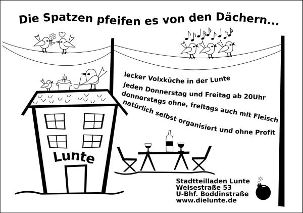 Die LUNTE wird sich mit einer Veranstaltung am 15.7. um 19 Uhr unter dem leider missverständlichen Titel "Bürgerlicher Antifaschismus - linker Antifaschismus - Was geht, was nicht?" daran beteiligen. Es bleibt zu hoffen, dass die bisherigen Standpunkte einer antifaschistischen Stadtteilpolitik im Hinblick auf die klassenpolitische Behandlung der sozialen Frage bei dieser Gesprächsrunde kritisch hinterfragt werden.