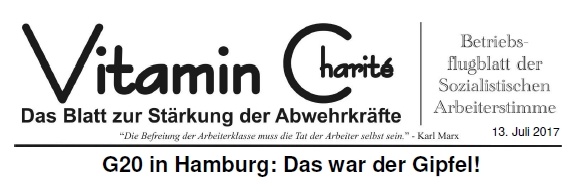 Wie sehr der Vorstand der Charité sich davor fürchtet, dass die ach so wertgeschätzten Beschäftigten wirklich miteinander ins Gespräch kommen und sich  darüber vielleicht ihrer Gemeinsamkeiten bewusst werden, zeigt die Meldung des Fakultätspersonalrates. Die drei Personalräte der Charité wollten entsprechend dem Universitätsmedizingesetz zu einer  gemeinsamen Personalversammlung einladen. Doch  die Charité will dies nicht zulassen und verweigert die Anerkennung dieser gemeinsamen Personalversammlung als Arbeitszeit. Das Schlackern in den Knien der Chefs ist umso auffälliger, als es um einrecht unverfängliches Thema gehen sollte, die VBL. Also Personalräte, für eine Personalversammlung mit dem Thema: Wie holen wir uns unsere Charité zurück? spenden wir gerne 2, 3 Stunden von unserer rotbeampelten Überstundenliste.