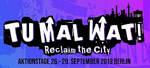 Deswegen will ein Bündnis verschiedener Gruppen vom 26. bis 29. September mit den „Tu mal wat Aktionstagen“ die wohnungspolitischen Kämpfe weiter zuspitzen. Aktionstage bieten sich an, um öffentlich beworbene Veranstaltungen wie Diskussionsrunden, Workshops, Filmabende und Solipartys mit handfester Praxis zu kombinieren. Thematisch geht es um die Enteignung, die Aneignung, das Sich-Widersetzten und den Erhalt von Räumen und Orten, in Theorie und Praxis.