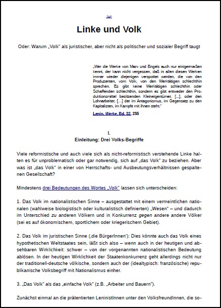 Oder: Warum „Volk“ als juristischer, aber nicht als politischer und sozialer Begriff taugtvon Detlef Georgia Schulze (TaP)