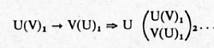 Die absolute Selbstvermittlung des Denkens, die sich in der Bewegung des Sichvermitteins seiner Bestimmungen vollzieht, ist aber keine eigene Bestimmung neben der Gesamtheit dieser Bewegung. Die absolute Idee ist das „Werden zu sich,"(33) sie ist die Gesamtheit der Bewegung des Sichvermittelns des reinen Denkens. Als solche wird sie am Schluß der „Logik" noch einmal für sich gestellt und in ihrer allgemeinen Bewegungsstruktur erfaßt. Dies ist die Darstellung der absoluten Idee als absoluter Methode.(34) Unmittelbarkeit und Vermittlung bilden eine Einheit. Die erste wird durch die zweite negiert: =>. Das setzt voraus, daß die Unmittelbarkeit U bereits als Vermitteltwerdenkönnen (V) gedacht wird. Die Vermittlung V, die die Unmittelbarkeit negiert, enthält diese als negierte (U), als das, woraus sie hervorgeht, in sich. Durch die Negation ihrer selbst => kehrt die Vermittlung insofern zur Unmittelbarkeit zurück, als der Vermittlungsprozeß ihr ganzes Sein, ihre Unmittelbarkeit ausmacht. Diese zweite Unmittelbarkeit ist aber nicht nur allgemeines Vermitteltwerdenkönnen. Sie enthält in sich als negierte die erste Unmittelbarkeit U (V) und deren Negation durch die Vermittlung V (U). Von daher läßt sich das Grundmodell der dialektischen Methode durch folgendes Schema ausdrücken: