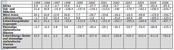Tabelle 16: Netto-Transfer von finanziellen Ressourcen in Entwicklungsländer und ehemalige stalinistische Staaten 1995-2006 (in Milliarden US-Dollar) (6)