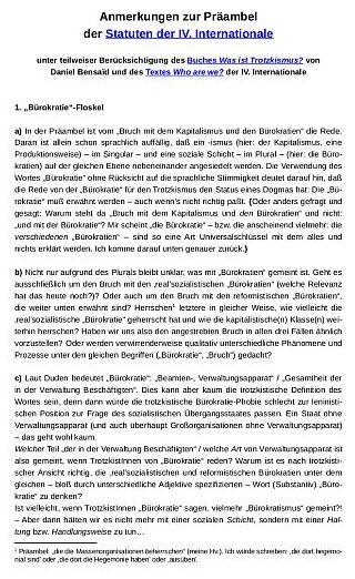 Anmerkungen zur Präambel der Statuten der IV. Internationale unter teilweiser Berücksichtigung des Buches Was ist Trotzkismus? von