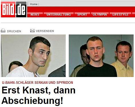 Die Münchener Strassen sind sicherer und zugänglicher geworden. Das Land kann wieder aufatmen und die Sektkorken knallen lassen (was es auch reichlich tut, siehe die Jubeltiteln und die Kommentare danach). Die allseits befürchtete Milde der deutschen Justiz ist ausgeblieben [1] . Mann/Frau kann wieder Vertrauen zu diesen Instanzen haben. Viel reibungsloser können nun Integrationsprojekte angeschoben, Nichtintegrierbare abgeschoben usw. werden. Diese drakonischen Strafen sollen „abschreckend“ wirken, hat man vernommen. Betrachtet man aber das Urteil, indem man es mit den in sehr viel gravierenden Fällen gefällten Urteilen einfach nebeneinander stellt, – z.B. mit dem in dem im vergangenen Mai ebenfalls in Bayern, in Nürnberg-Fürth [2] gegen eine Gruppe von Jungdeutschen wegen Mordversuchs in 42 Fällen geführten Prozess gefällten Urteil, das auf drei bzw. fünfeinhalb Jahre Freiheitsstrafe lautete, die teilweise auf Bewährung ausgesetzt wurde, – wird  erst verständlich, was mit der „Abschreckung“ tatsächlich gemeint ist: Der Versuch, 42 Kanaken abzufackeln sowie jüdische Friedhöfe zu verwüsten ist was gaaanz Anderes als einen 76-jährigen, pensionierten deutschen Schulleiter der Generation H (mit J am ende) in der U-Bahn zusammenzuschlagen. Wir haben verstanden.